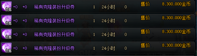 可以把稀有装扮升级为稀有克隆装扮,可交易一次,目前版本价值不高,拍卖行价格800w。