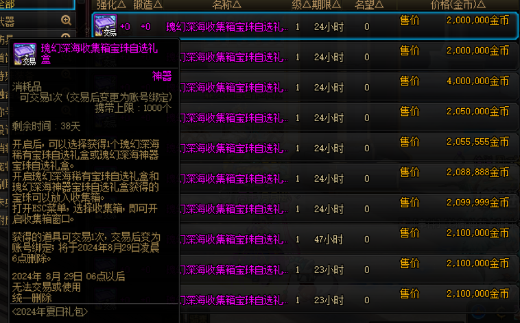 另外,本次夏日收集箱宝珠的单价为200万金币,满收集仅需2000万金币,勇士们若是错过新春宝珠收集箱,也可以趁机完善。