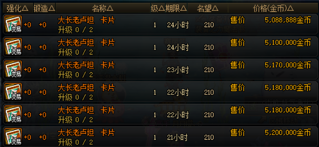 以魔法石的35属强卡大长老卢坦,现在没升级的卡片价格仅510万金币。