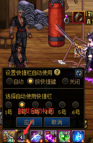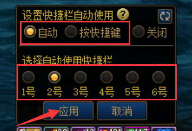 点开设置界面后,勇士们可以根据自身的喜好来选择“自动“或者是”按快捷键“,再选择消耗品对应的键位,最后点下应用按钮,便可以实现自动补药。下面会介绍自动补药和快捷键补药的区别,帮助勇士们更快上手此功能。