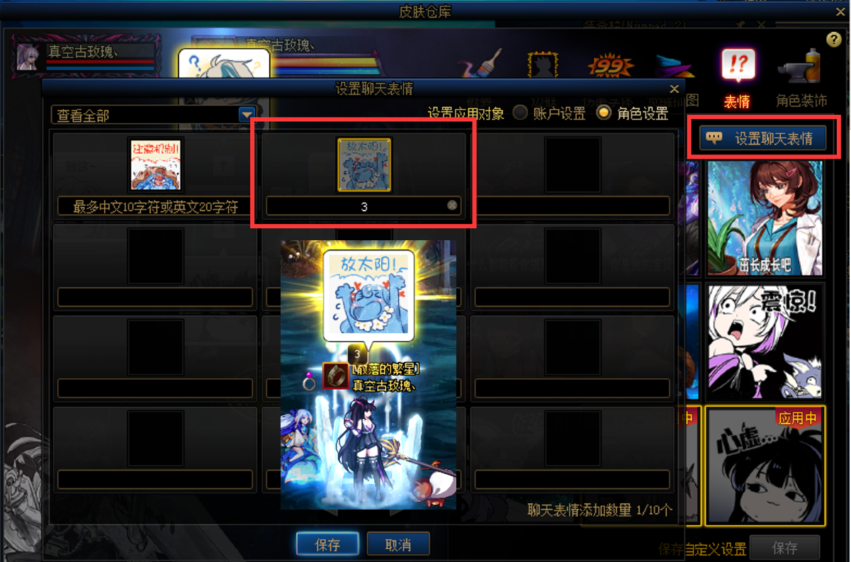 而且表情可以和喊话绑定,在皮肤仓库→表情→设置聊天表情中设置好喊话后,在聊天框打出对应的文本即可自动发表情。由于此表情已经绝版,所以这个方法并不适用于全部勇士。