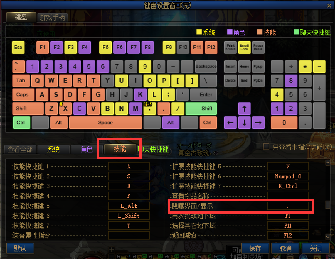 要解决这个问题也很简单,打开键盘设置窗口后找到“地下城特殊键2”然后改成自己喜欢的键位即可。