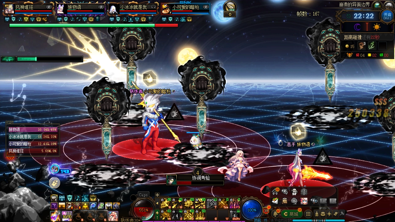 洛佩斯一阶段法阵机制,当出红圈提示要爆炸时,有无敌技能的角色其实可以不出圈,这样可以缓解法阵的收缩速度,一些保护罩技能还能使全队不出圈,非常好用,快炸时聚在一起就可以了。