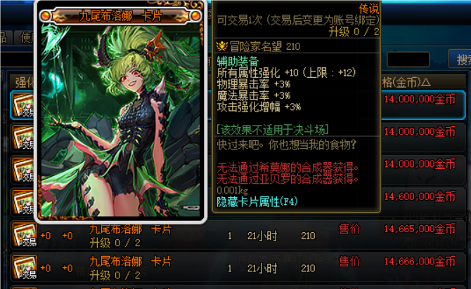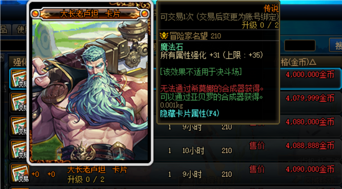 魔法石部位可以替换成大长老卢坦,满属性可以获得35全属性强化。并且白板卡片400万就可以拿下,也有一定的价格优势。
