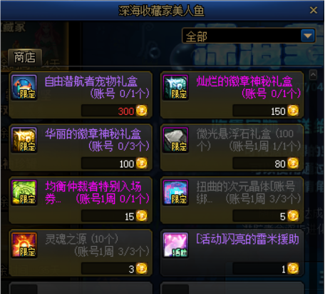 深海宝物收藏家活动当中也可以兑换到灿烂和华丽徽章随机礼盒,冒险家们不要忽略。