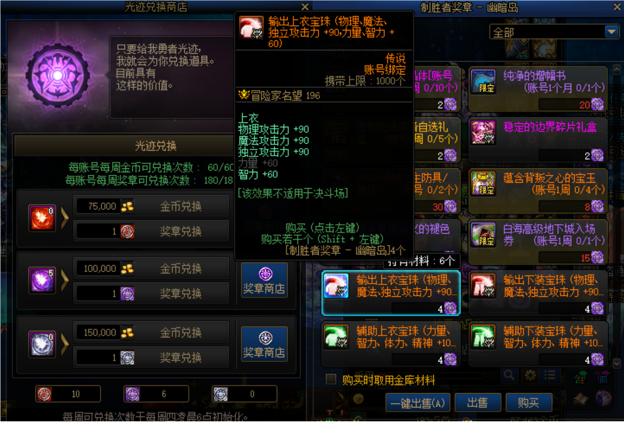 笔者逐一比较过后,有提升且值得兑换的附魔只有幽暗岛商店的上衣下装附魔。