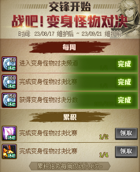 当然最好还是完成“每周任务”,时间不多的小伙伴们每周打一次,最终也能领完活动核心奖励“雪人套&透明天空升级券”。