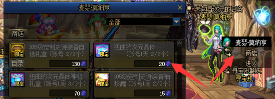 (2)NPC“麦瑟·莫纳亨”商店,兑换次元晶体