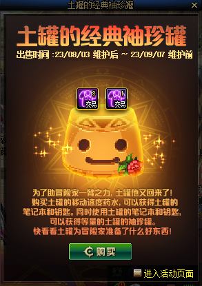 对于一些比较喜欢拼运气的玩家来说,购买土罐也是不错的选择。虽然在本次每日签到中也赠送了30土罐供玩家开启,但额外的开启就代表了更大概率产出稀有道具。