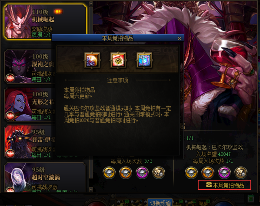 巴卡尔攻坚竞拍当中新加入了矛盾的结晶体礼盒,打开之后可以随机获得1~500个协调结晶体,不过此道具在每周竞拍当中随机出现,勇士们可以提前通过本周竞拍物品查看。