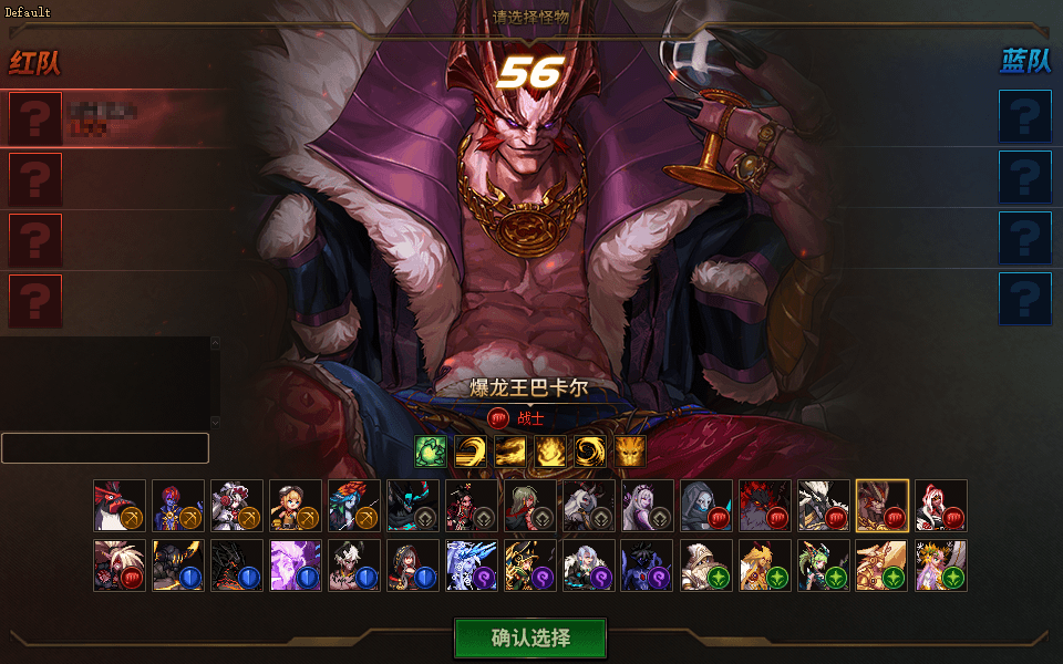 匹配完成以后,会进入角色选择界面,勇士们可以选择自己心仪的角色进入游戏。红蓝双方在选择角色时无法互相察觉,且自己的队伍当中不能选择重复的角色。