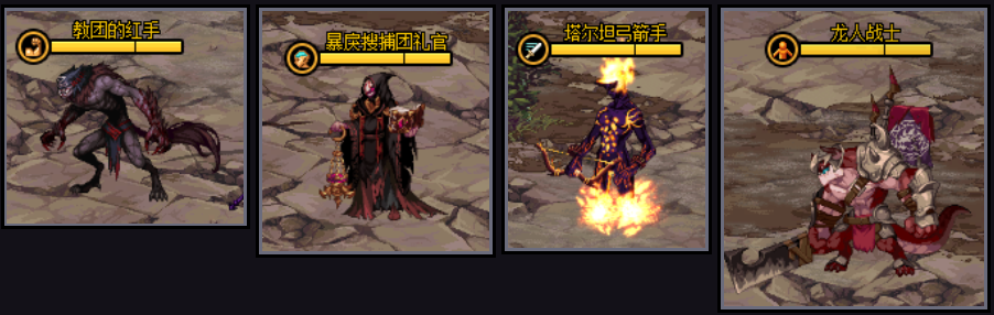 进入小游戏之后,技能栏也会变成怪物对应的技能,怪物只有血量值,没有法力值。