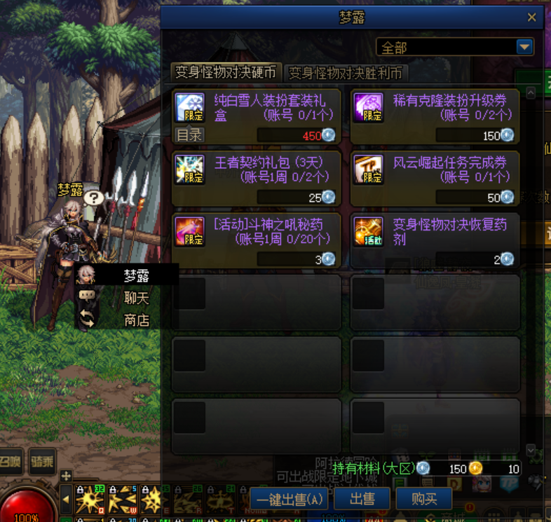 活动商店可以通过梦露进入,参与小游戏获得的变身怪物对决硬币和变身怪物对决胜利币可以在活动商店当中兑换奖励。