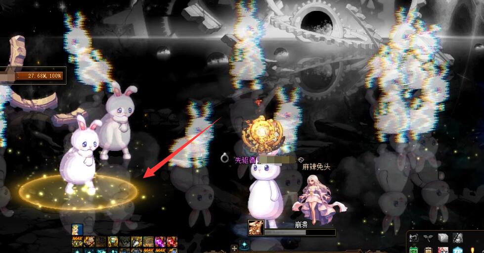 进入内场后,场地内有大量的分身需要清理,攻击脚底带金光的分身可以一次性清除大量分身,清理完分身后玩家站在绿色圈内即可完成机制。