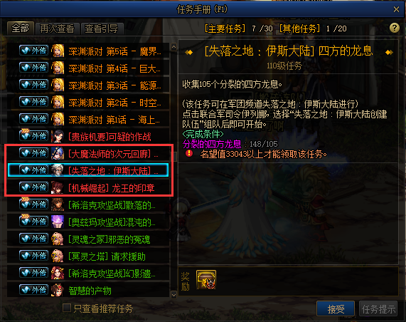 而在本次更新优化中,新增了伊斯大陆、次元回廊、机械崛起三个地区的外传任务,可使用100左右的对应材料获取到一个融合装备自选礼盒。对于没有融合装备的玩家们来说,单通过活动提供的材料,就可以轻松获得875点名望的加成。