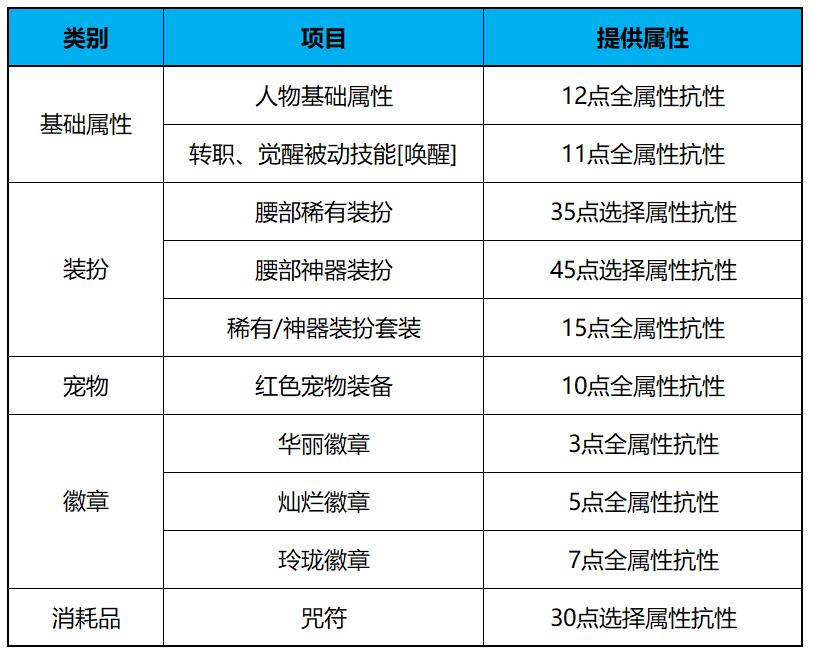 属性抗性需要注意装扮属性、宠物装备等细节处理,笔者在下方列举了一些提供属性抗性的细节打造,玩家可根据自身情况优化打造。