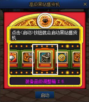 黑钻售货机中也可以通过消耗钻石硬币来摇奖,奖池中有装备品级调整箱,而高级黑钻售货机中的装备品级调整箱升级到了2个或5个。