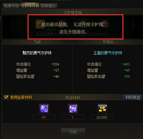 需要注意的是,守护珠升级不能超过勋章的品级,所以届时小伙伴们可以优先升级勋章。