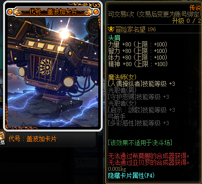 新增代号:盖波加卡片,为辅助职业头肩部位附魔: