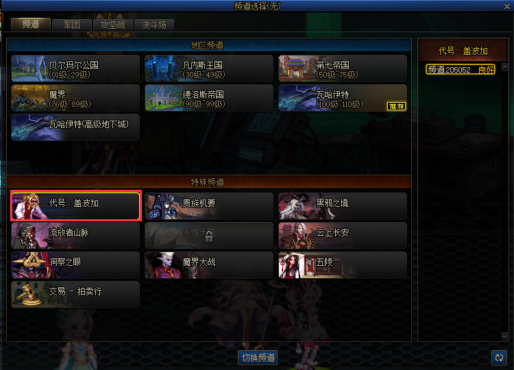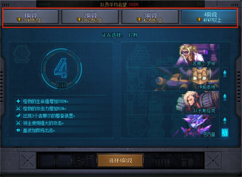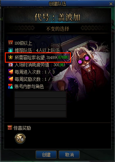 代号:盖波加副本共4个关卡,分为四个难度阶段,各个难度推荐名望如下: