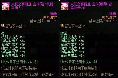 对输出职业而言,今年金秋腰带、鞋子附魔宝珠中的技能攻击力数值由3%提升至5%,名望由221点提升至281点,并且额外增加了3%的暴击率。