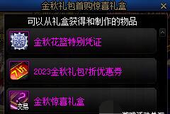 首购惊喜礼盒包含1张2023金秋礼包7折优惠券。