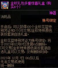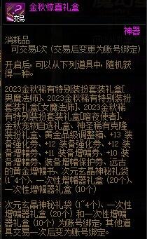 每套金秋礼包中包含1个金秋称号自选礼盒,礼盒虽为账号绑定,但其中的金秋称号可以交易。