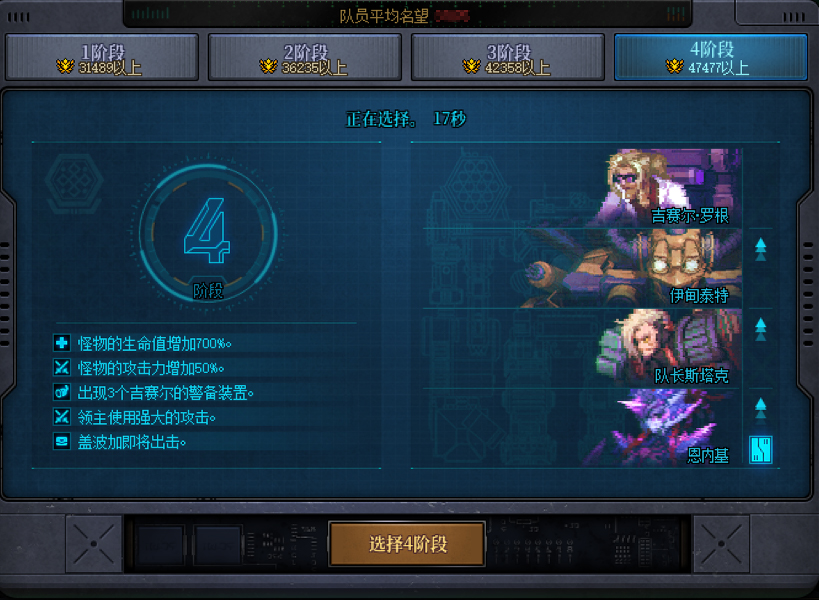副本的初始门槛为31489,进入频道需要达到副本门槛。与军团副本类似,代号:盖波加也拥有一套难度划分系统,31489为一阶段难度的推荐名望,后续二、三、四阶段难度的推荐名望值分别为36235、42358、47477。