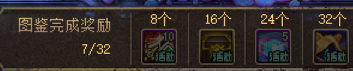8个图鉴奖励10个装备完美词条合成券可以节约不少金币。16个图鉴奖励一件自定义史诗装备,不是太有吸引力。24个图鉴奖励5个次元晶体。虽然数量不多,但是对于词条没毕业的角色来说,总比没有强。