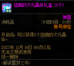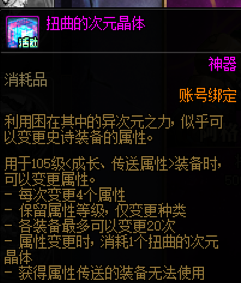 扭曲的次元晶体对于目前的角色来说还是有很大需求量的,属于每天必换道具。