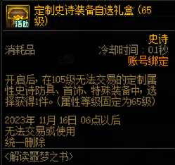 定制史诗装备自选礼盒,选择一件自定义史诗装备。不过在之前的史诗之路活动中已经获取了不少自定义装备了,对这件道具不会有太大需求。除非是没有能调词条的自定义装备了。