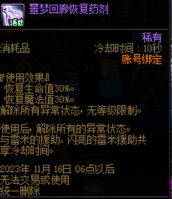 噩梦回廊恢复药剂是新出的活动恢复药剂,效果与闪亮雷米一致。目前可获取永久恢复药剂的途径越来越少,所以在恢复药剂的使用上最好也是先消耗这些限时活动药剂。有多余的硬币可以兑换。