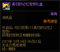 第三个是新出的小游戏,参与小游戏噩梦回廊可以获取到的重点奖励是梦想白金徽章礼盒以及真切的记忆宠物礼盒(宠物无属性)。