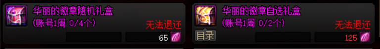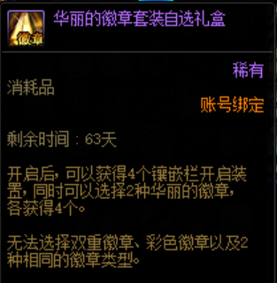 打开金秋礼包后可以获得1个华丽的徽章套装自选礼盒。开启后可以从两种华丽徽章中各获得4个。
