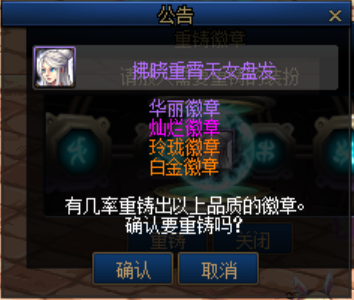 分解高级装扮可以获得华丽和灿烂的徽章,分解稀有装扮可以获得的徽章种类增加玲珑徽章和白金徽章。