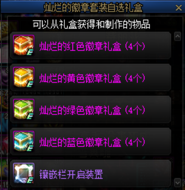 在11月10日之前上线即可领取1个灿烂的徽章套装自选礼盒,打开后可以获得红、黄、蓝、绿四种颜色的灿烂徽章各4个外加8个镶嵌栏开启装置。