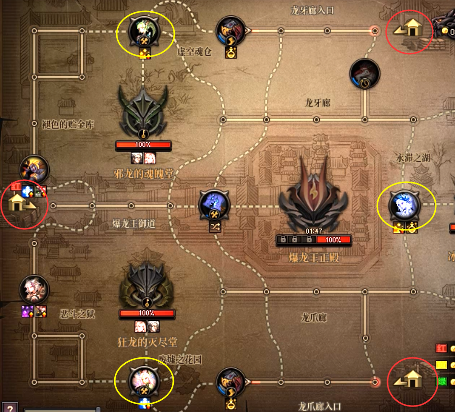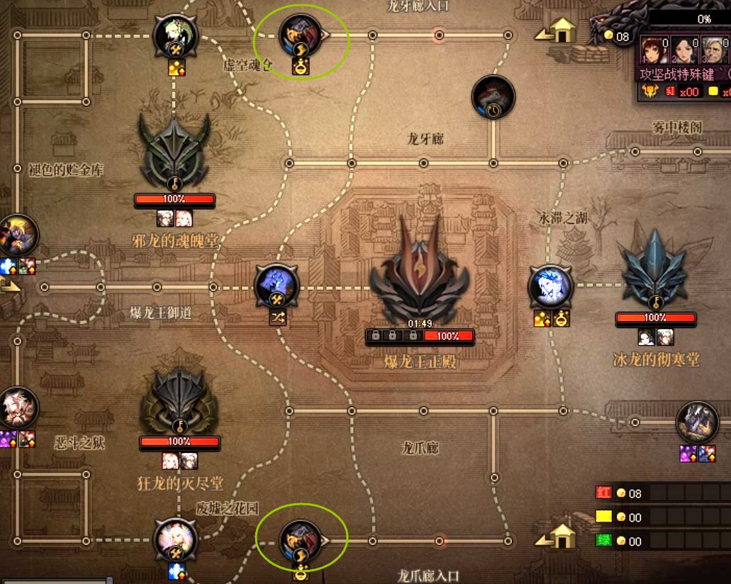 如果自己路线上的巨龙未苏醒,则不用看地图,直接击杀门将,击杀后再根据所带buff去找对应区域。