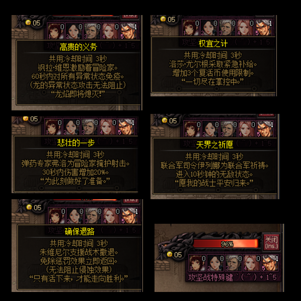 击杀地图副本中的大眼怪和龙人怪可以为全攻坚队获得buff,获得的buff可以在右上角查看,每一位队长都可以使用这些buff,小伙伴们可以通过键盘上的“~”键+对应buff的数字键来快速释放。