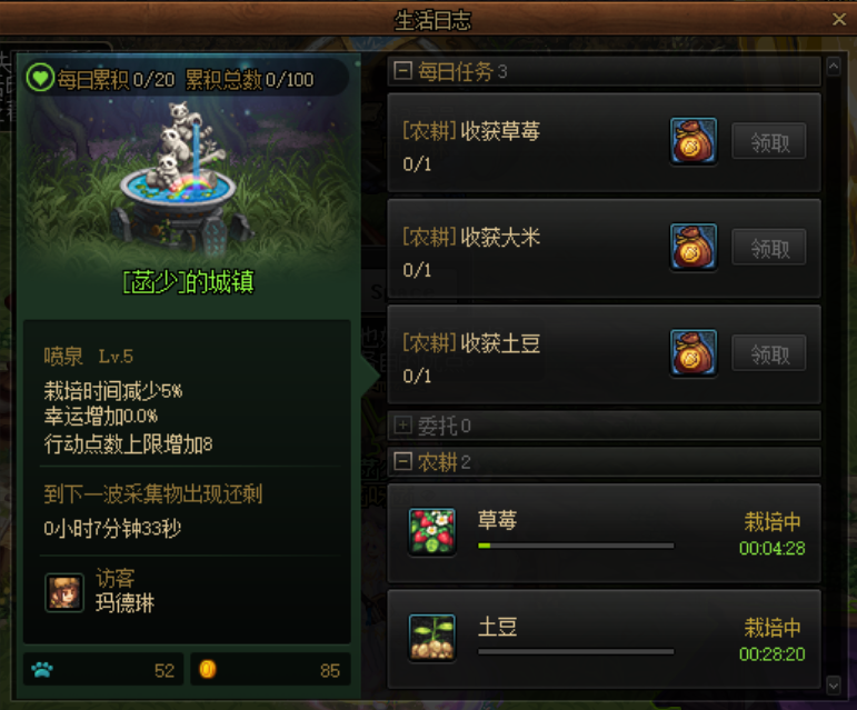 生活日志每天会刷新三个种植任务,做完可以获得150家园币,属于每天必做。