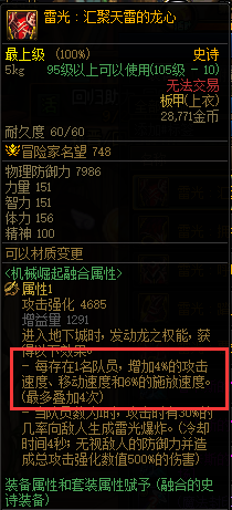 一般来说增益量最高的融合装备为防具——雷光、首饰——黑龙、特殊装备——光辉为常规搭配。特殊装备中,光辉系列的作用会更多的考虑到生存,故比较契合辅助职业。