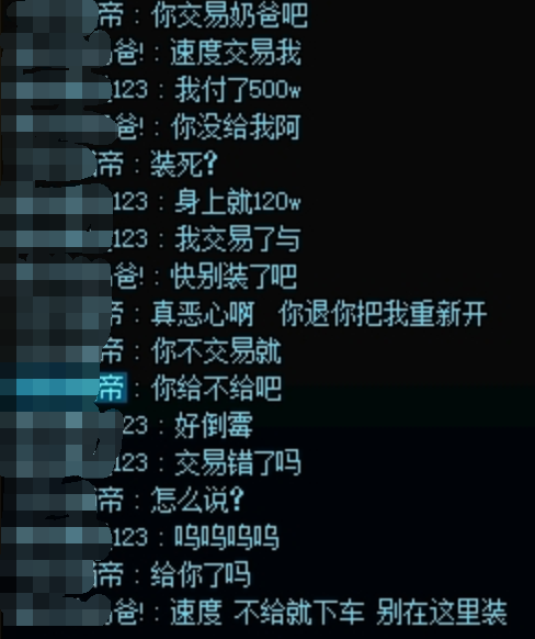 第3种:打手装备正常,但是刚进队就要交易,交易完毕后就踢人。这种骗子就是单纯的坏,先骗一波人,然后再正常收钱带人。这样不同的人对骗子就会有不同的印象,被骗后即使喊喇叭宣传也很难影响到骗子。