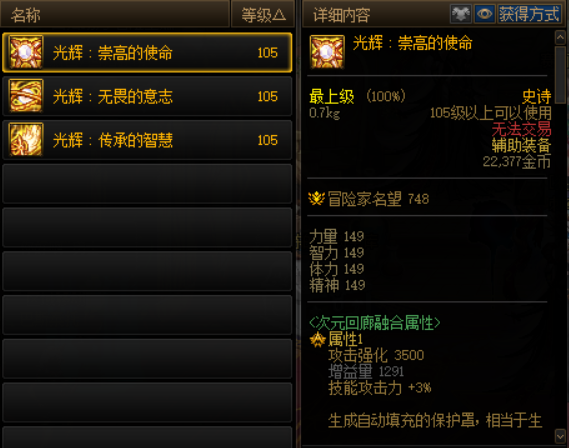 简单的技能攻击力和技能攻击范围加成效果,为输出职业的主流贴膜装备。