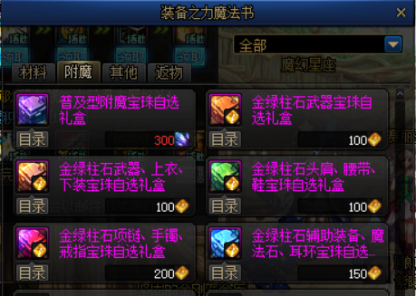 附魔在角色的提升当中也同等重要,培养初期使用金绿柱石附魔即可,在装备之力魔法书商店当中即可使用金绿柱石兑换。