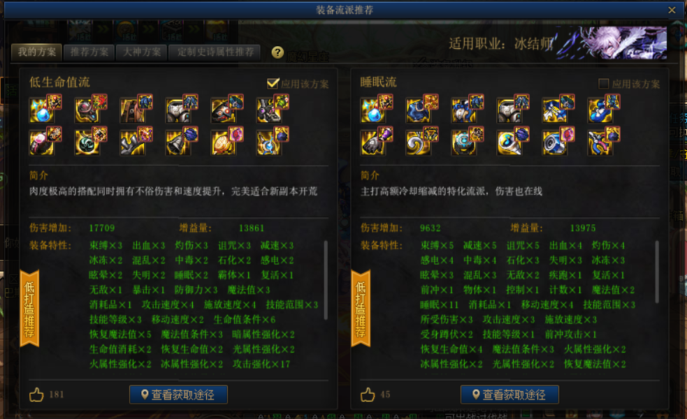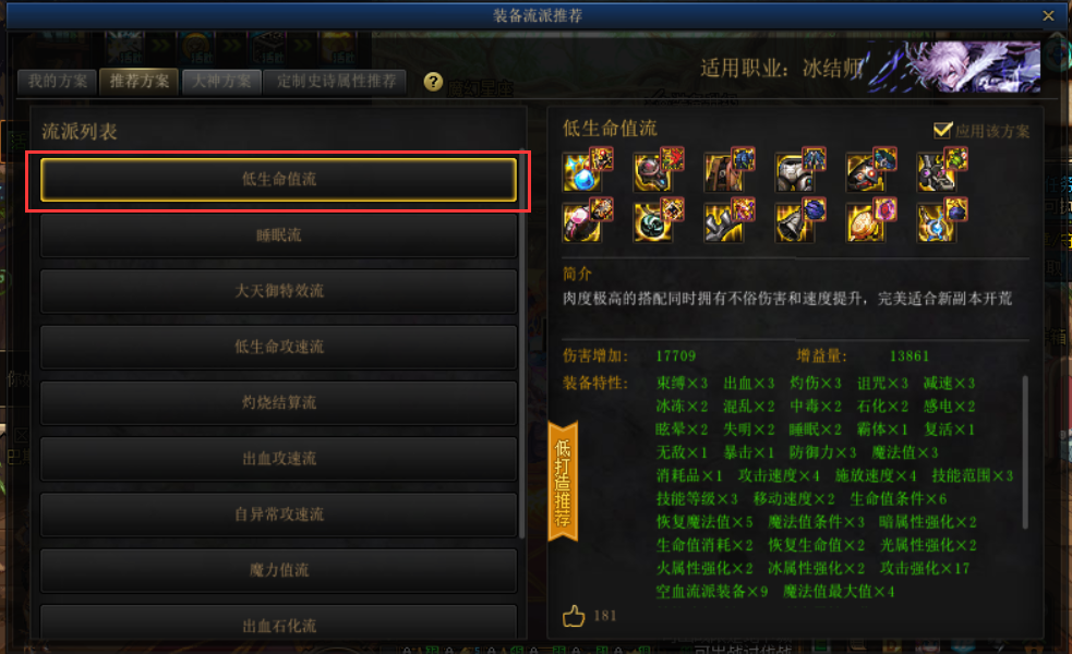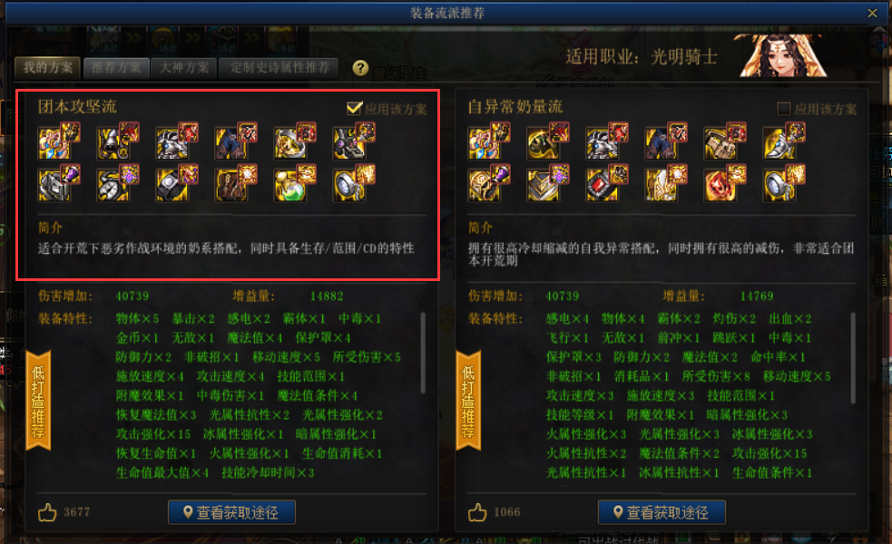 培养角色的第一件事情就是选择一套合适自身的史诗搭配,勇士们可以通过活动栏-装备流派推荐处,查看当前职业的强势流派推荐。