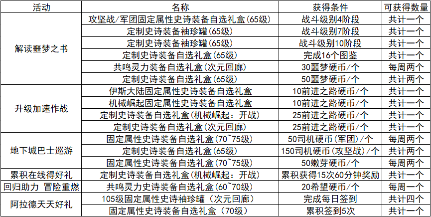 除此之外,活动当中还可以获得大量的高词条等级史诗装备,下面笔者为大家列举在下方表格中供勇士们参考,勇士们可以用这些装备进行喂养: