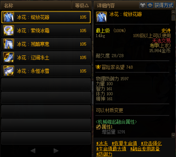 装备冰花装备时,会根据攻击、释放技能、被击、时间增长等方式积攒寒气,每20点寒气会提升一个阶段,共有五个阶段,随着阶段的提升,前面阶段的效果也会持续保留。