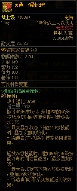 灵通贴膜的效果为增加技能的冷却恢复速度,五件装备分别服务不同等级的技能。伤害能力上不算优秀,但是其功能性非常优秀,尤其是对70级以上大技能冷却时间的缩减,可以在太阳持续时间内尽可能地多释放几次大技能,所以灵通大部分情况下会拿出来进行散搭。