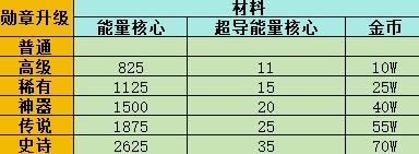 首先就是勋章升级,每次升级所需的材料都会增加,最高可以升级至史诗等级,按一周四次通关的奖励的材料计算,最少也需要5周的时间,才能完全将勋章升至满级。