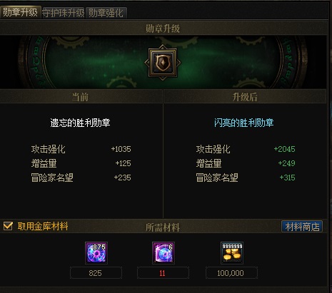 副本盖波加的更新加入的同时,勋章成长系统也随之发生的变化。新版的勋章升级强化的材料需要去挑战新副本代号:盖波加获取,升级后的勋章属性也更加强大。