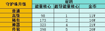 其次是守护珠的升级,守护珠和勋章升级略有不同,守护珠一共有四个不同颜色,每个颜色都需要单独升级,因此需要升级四次。守护珠的等级不能高于勋章等级,同时守护珠最高只有传说等级